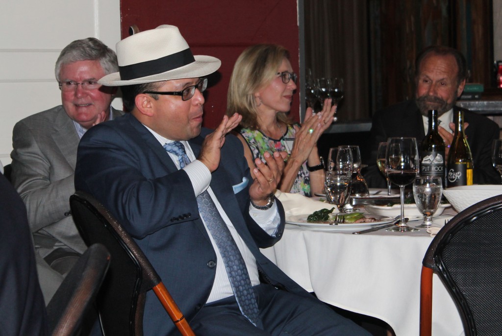 - Sporting his Panama hat, Assemblyman Luis Alejo, D-Watsonville, joins in the applause during CAA’s dinner at Mulvaney’s.