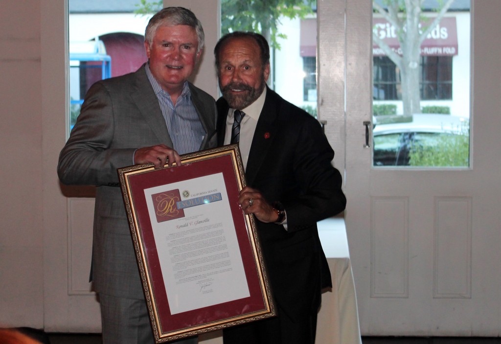 - Ron Granville, left, poses with Sen. Jerry Hill, D-San Mateo. Hill presented Granville with a Senate resolution recognizing his leadership as CAA’s board president in 2014.