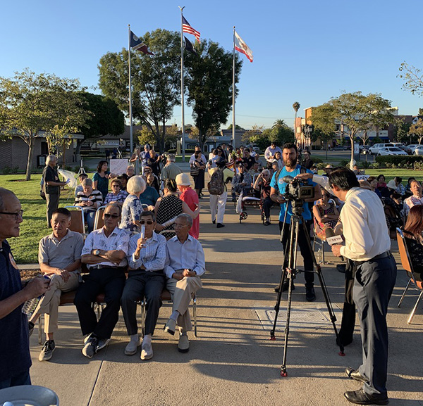 An overflow crowd gathered outside City Hall during last week’s Westminster City Council meeting.